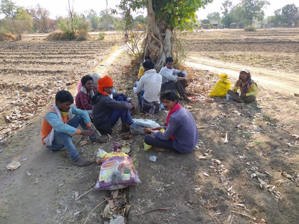 Ils venaient d'un village du district de Singrauli, dans le Madhya Pradesh, et travaillaient comme salariés à Bharuch (Gujarat) lorsque la fermeture a été annoncée. Ils devaient lutter pour la nourriture de base et un abri, et même leur employeur leur a dit de partir chez eux. C'est ce qu'ils ont fait. Comme ils ne disposaient d'aucun moyen de transport, leur seule option était de marcher. Et c'est ce qu'ils firent. Pendant sept jours maintenant. Ils marchaient pendant la journée et dormaient n`importe où quand la nuit tombait. Ils avaient des oignons et des pommes de terre, qu'ils faisaient cuire s'ils trouvaient du bois de chauffage et de l'eau.