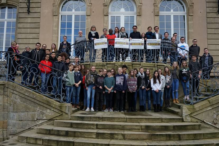 Ce mardi 16 janvier 2018, la communauté scolaire du Lycée Classique d'Echternach, en collaboration avec l'A.sb.l. H.E.L.P. (HEALTH, LIFE, EDUCATION, PEACE), a remis plusieurs chèques d'un montant global de 24000 € à différentes ONG luxembourgeoises, à savoir Caritas, Padem, Handicap International et Pharmaciens sans Frontières Luxembourg.