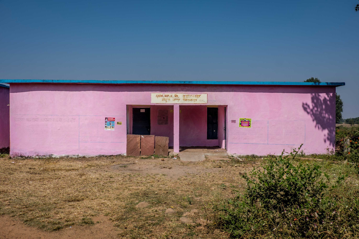 Visite d’une école du projet Prasoon. PSF a financé du matériel didactique distribué dans les écoles des 25 villages du projet.