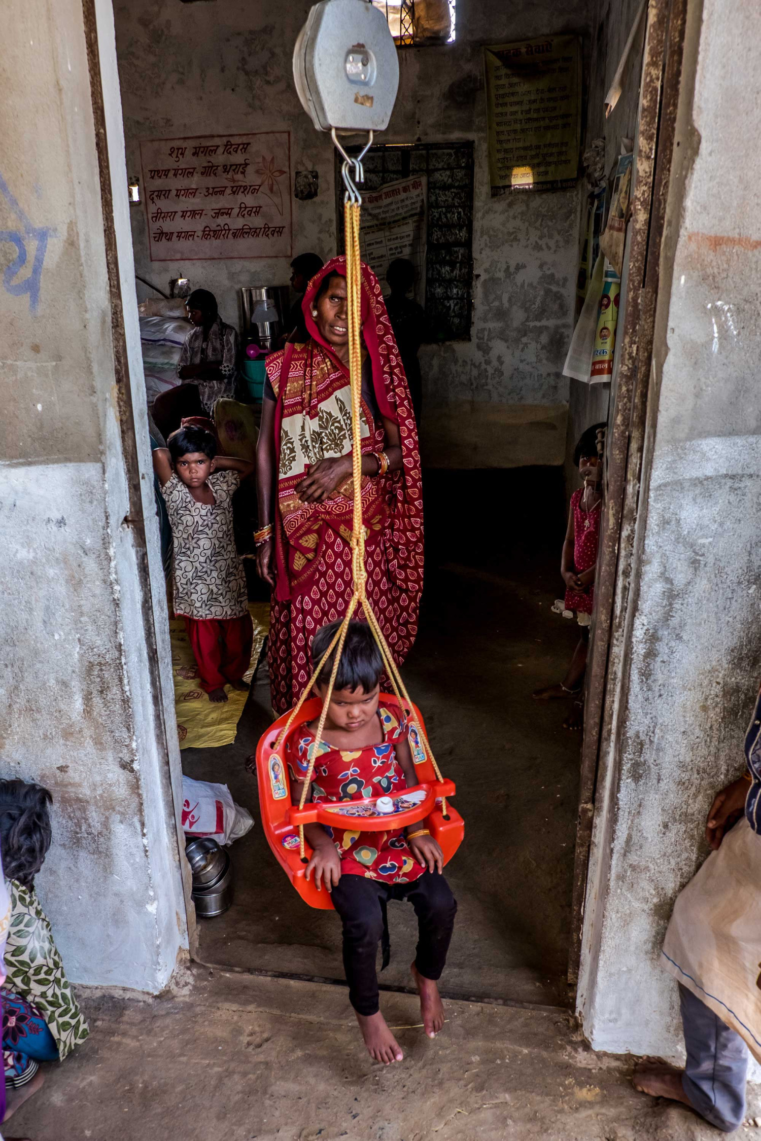 Les enfants sont pesés et nourris dans les “crèches” (anganwadi).