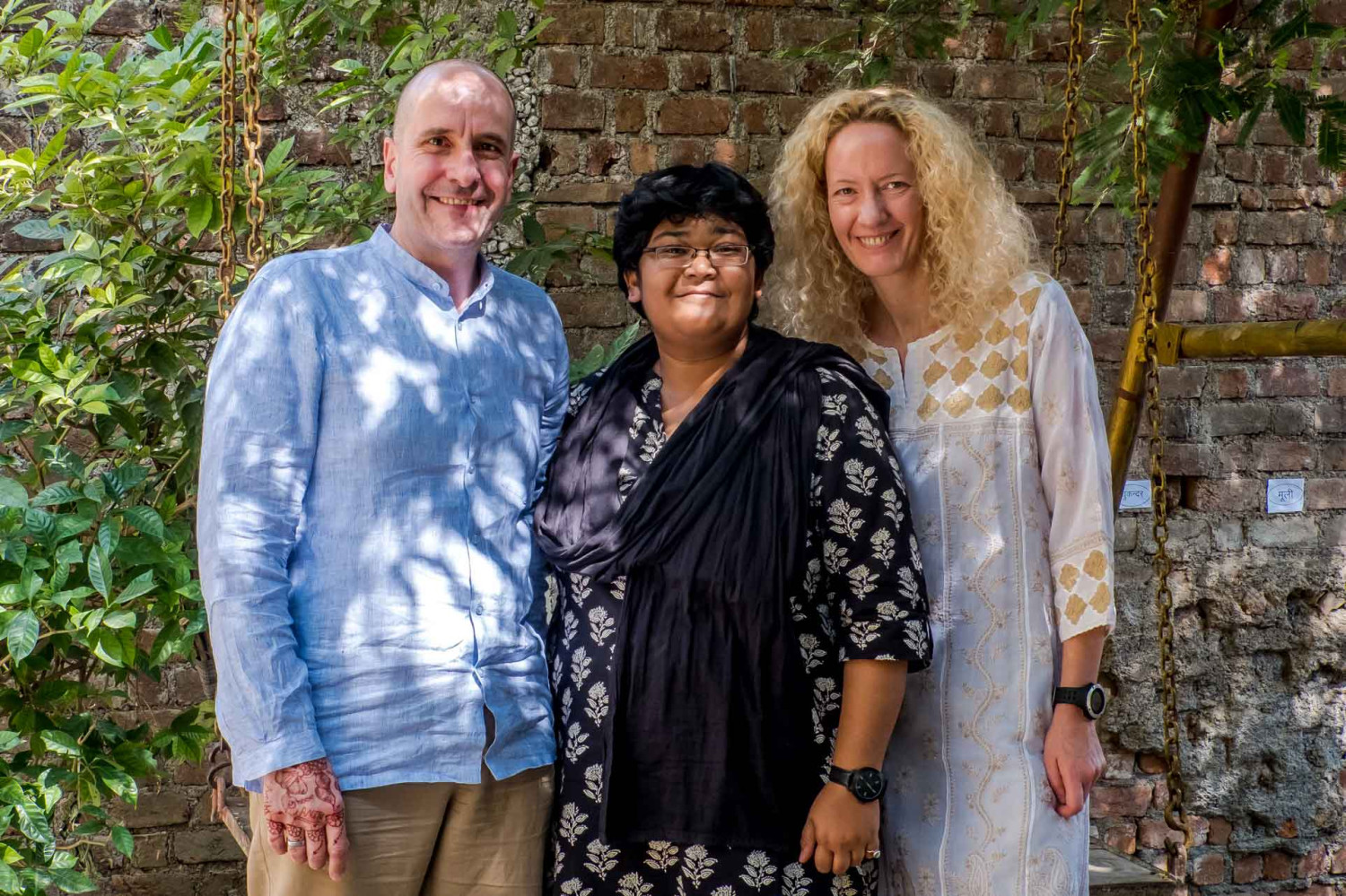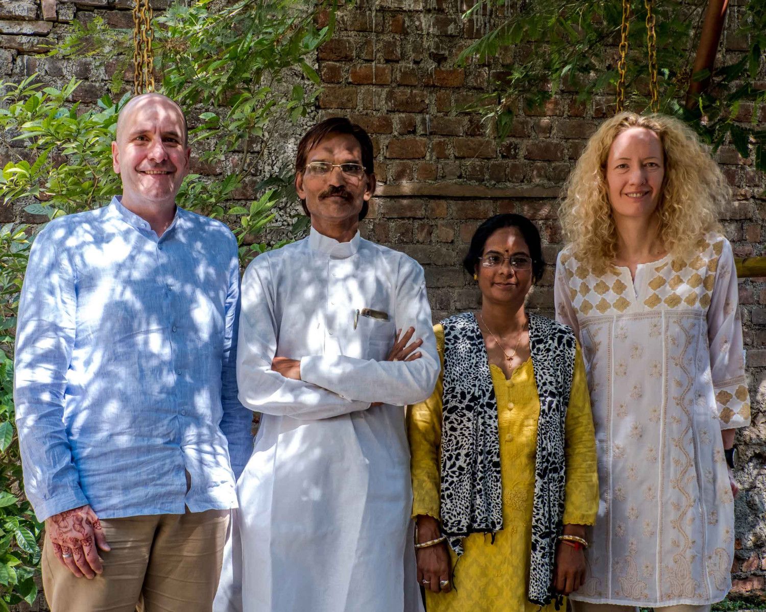 Serge et Cynthia entourent Sudhir et Seema, le directeur de l’ONG locale Prasoon et son épouse Sharmili Basu de Terre des Hommes. Elle gère les visites de projets, traduit, explique, fait le suivi des actions et du budget.