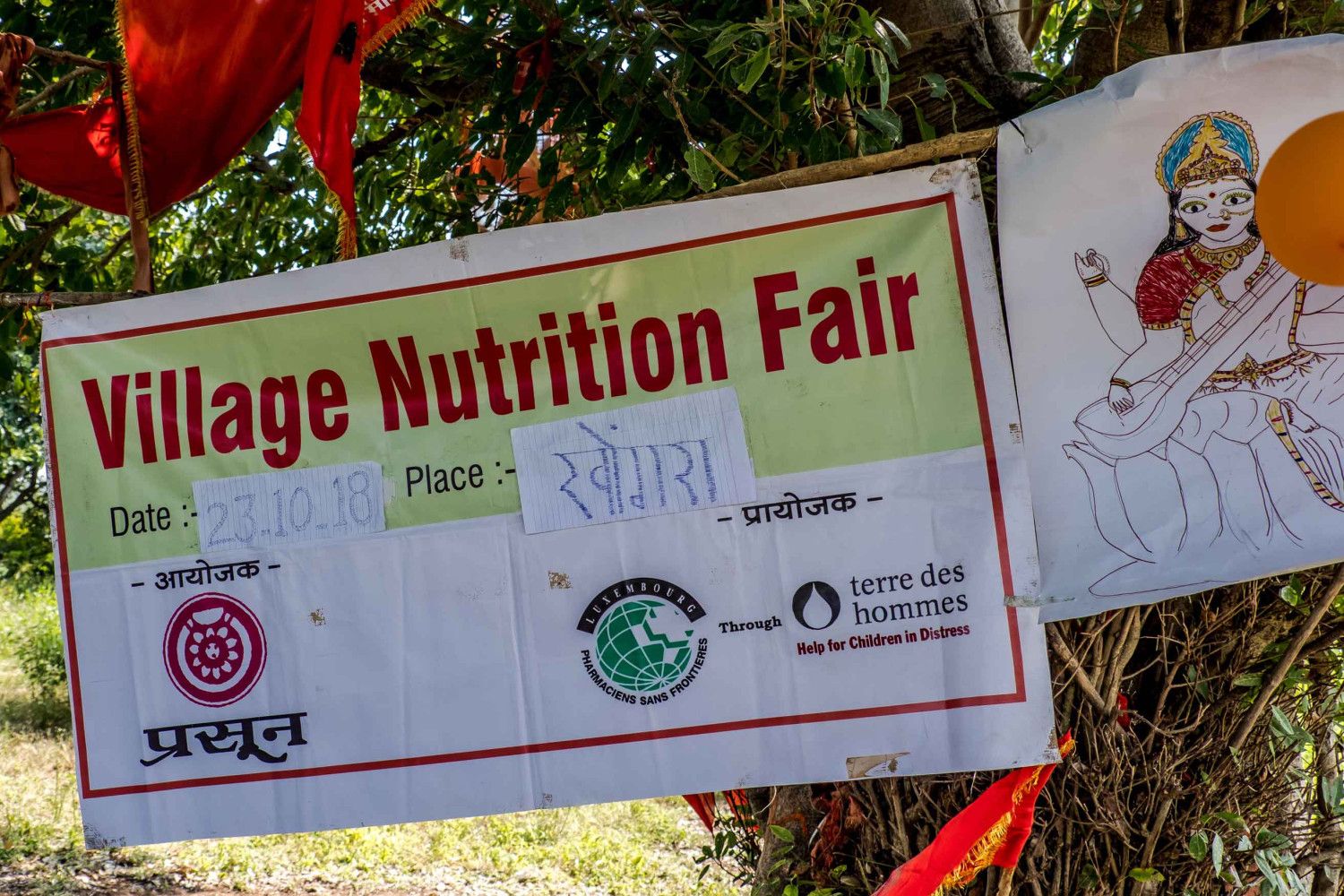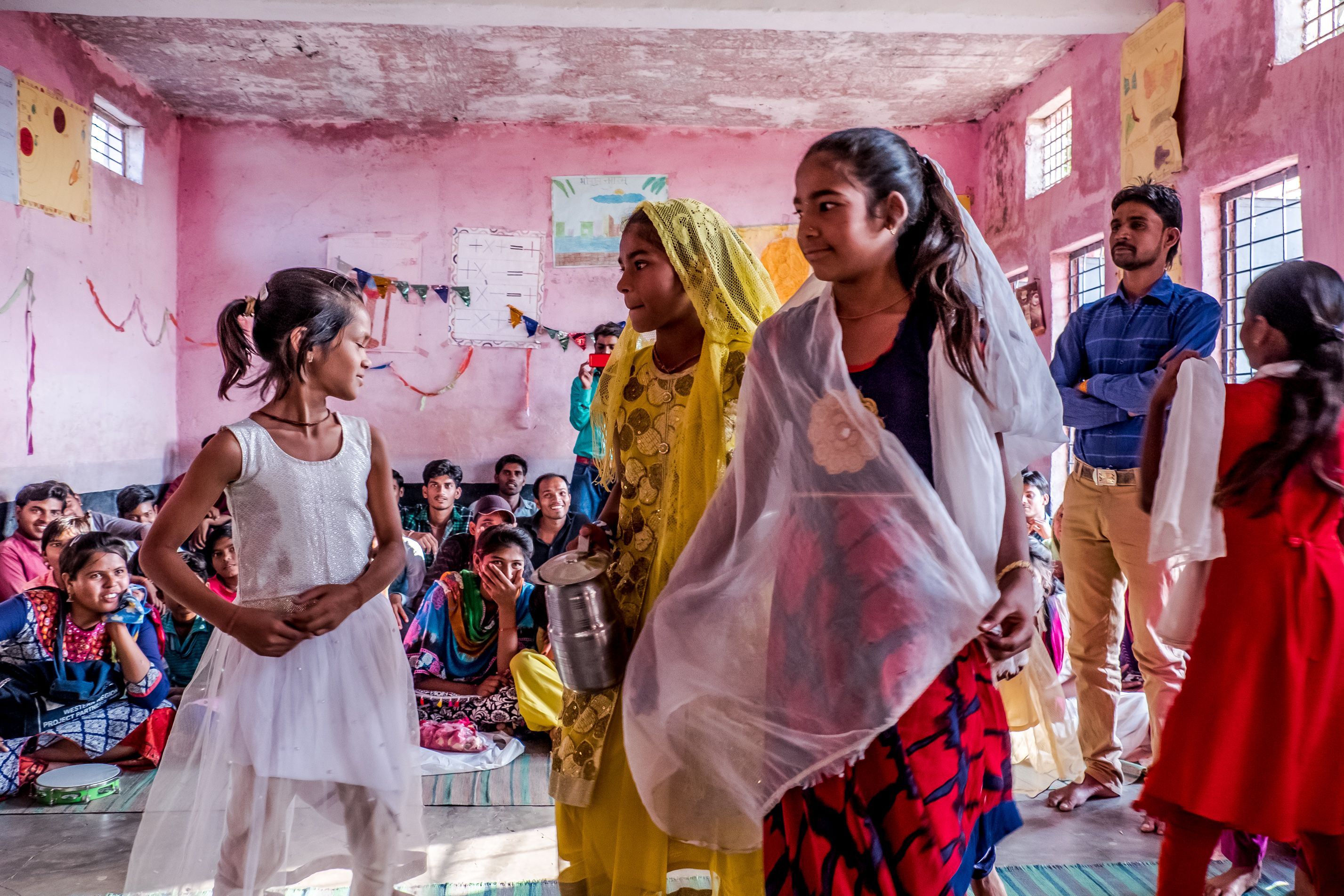 Ces enfants nous ont joué un sketch. En Inde, la transmission d’informations importantes passe souvent par des chants, danses ou sketchs. En effet, ainsi, même les illettrés sont sensibilisés. Les sketchs parlent d’hygiène, de la scolarité, de l’abus des mariages d’enfants, de la nutrition saine, des droits des enfants…