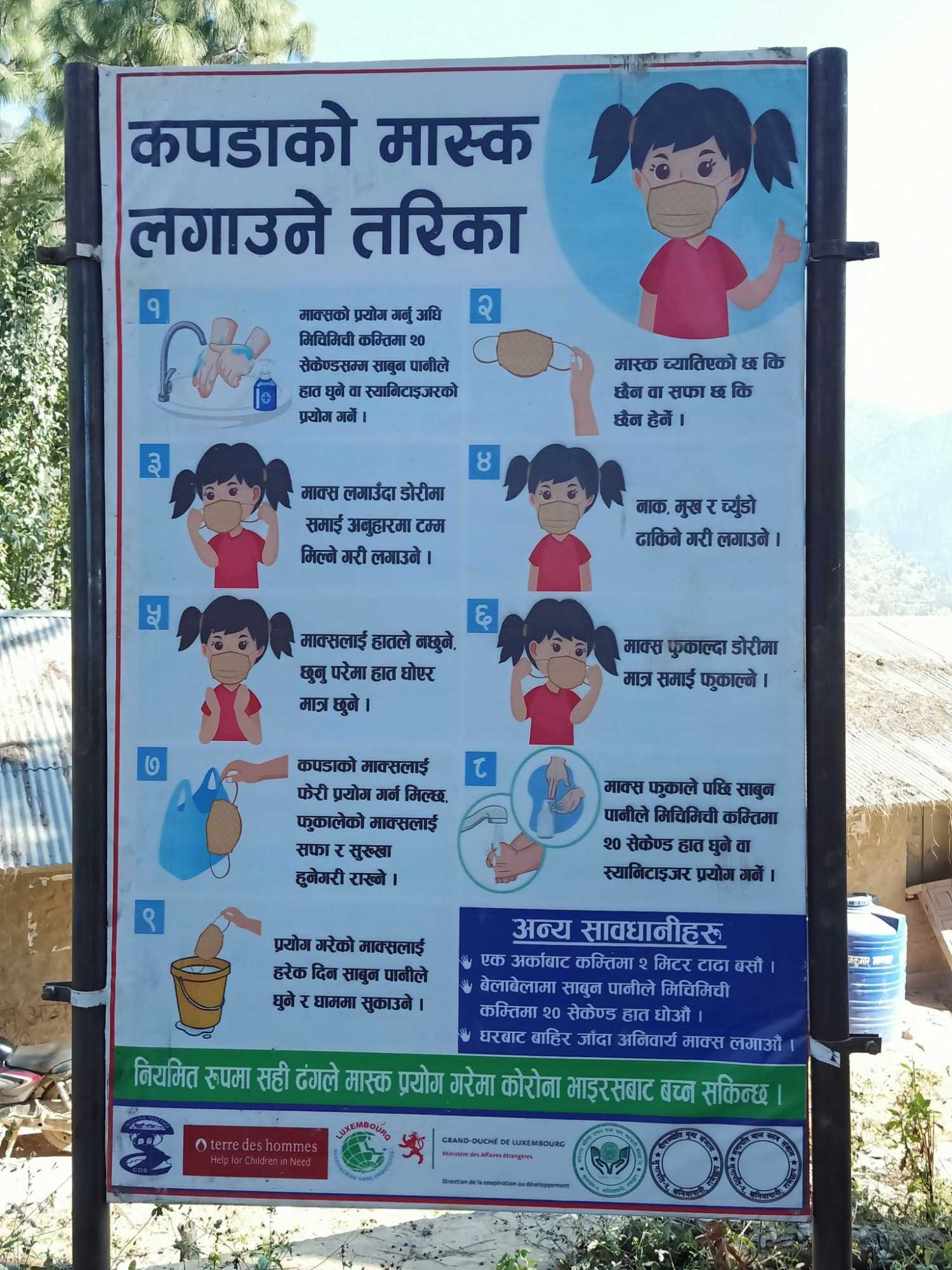 2020: Lutte contre la pandémie COVID-19. Achat de matériel de protection et d’hygiène, développement de petits systèmes d’adduction d’eau potable pour l’installation de points d’eau dans les lieux stratégiques pour promouvoir le lavage des mains, campagne d’affichage de promotion des gestes barrières et la bonne utilisation des masques de protection.